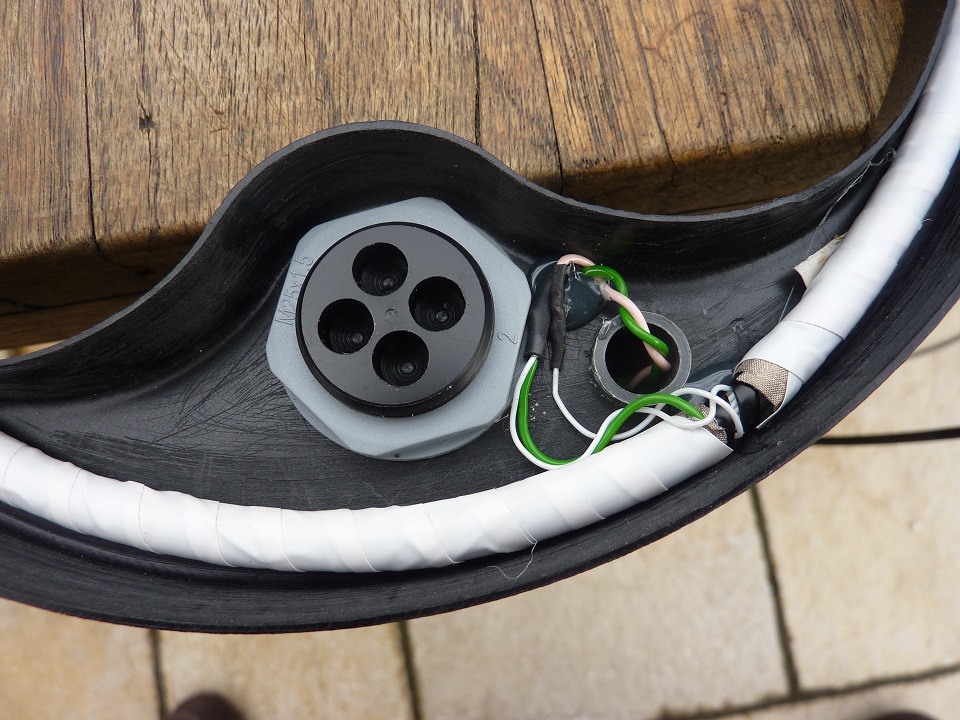 In my case the cable is swimming/movable in relation to the pole as the detector electronics are to my back on a belt around my waist.