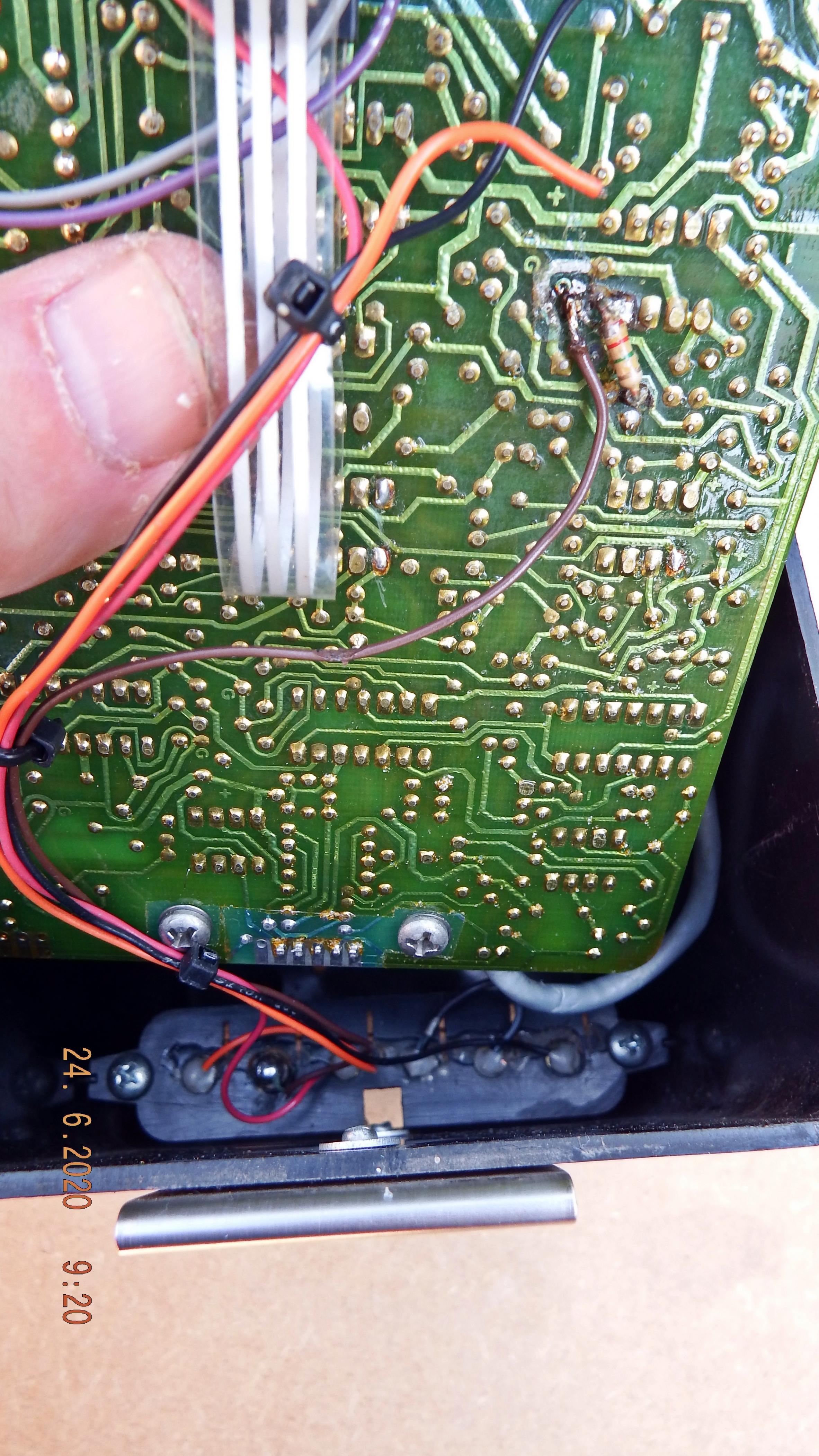 is anyone able to tell me wear this orange wire has came off. also i am not sure if the board has had a modification or a repair. i am sure you well talented guys are sure to know. plus what type of battery does this take. voltage etc. anyone have any photos of the battery and battery back cover.