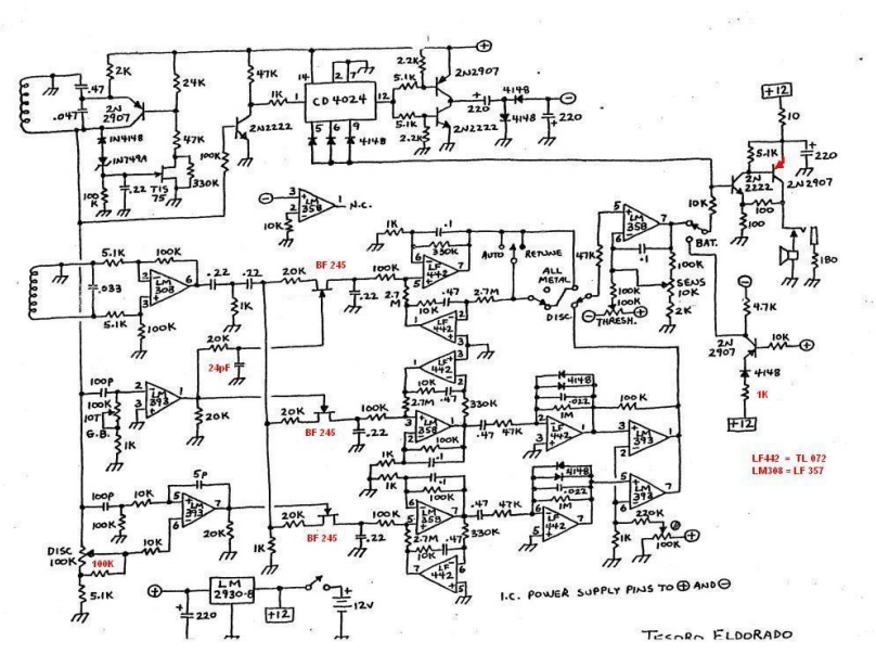 Good evening, to the members of this Forum, I wanted to ask the Gurus for their opinion on the functioning of a homemade Eldorado treasure circuit. A few years ago I made two Eldorado circuits that worked immediately, but in both of them I never managed to make ground balance, or to remove the ferrite. For this reason I left this project aside, and I built IDX pro. Today I put my hand to eldorado again and I realized that the circuit does not remove the ferrite by simulating the GB, but manages to remove an iron tool. Why, what can I do? Thanks in advance to those who will answer my problem.