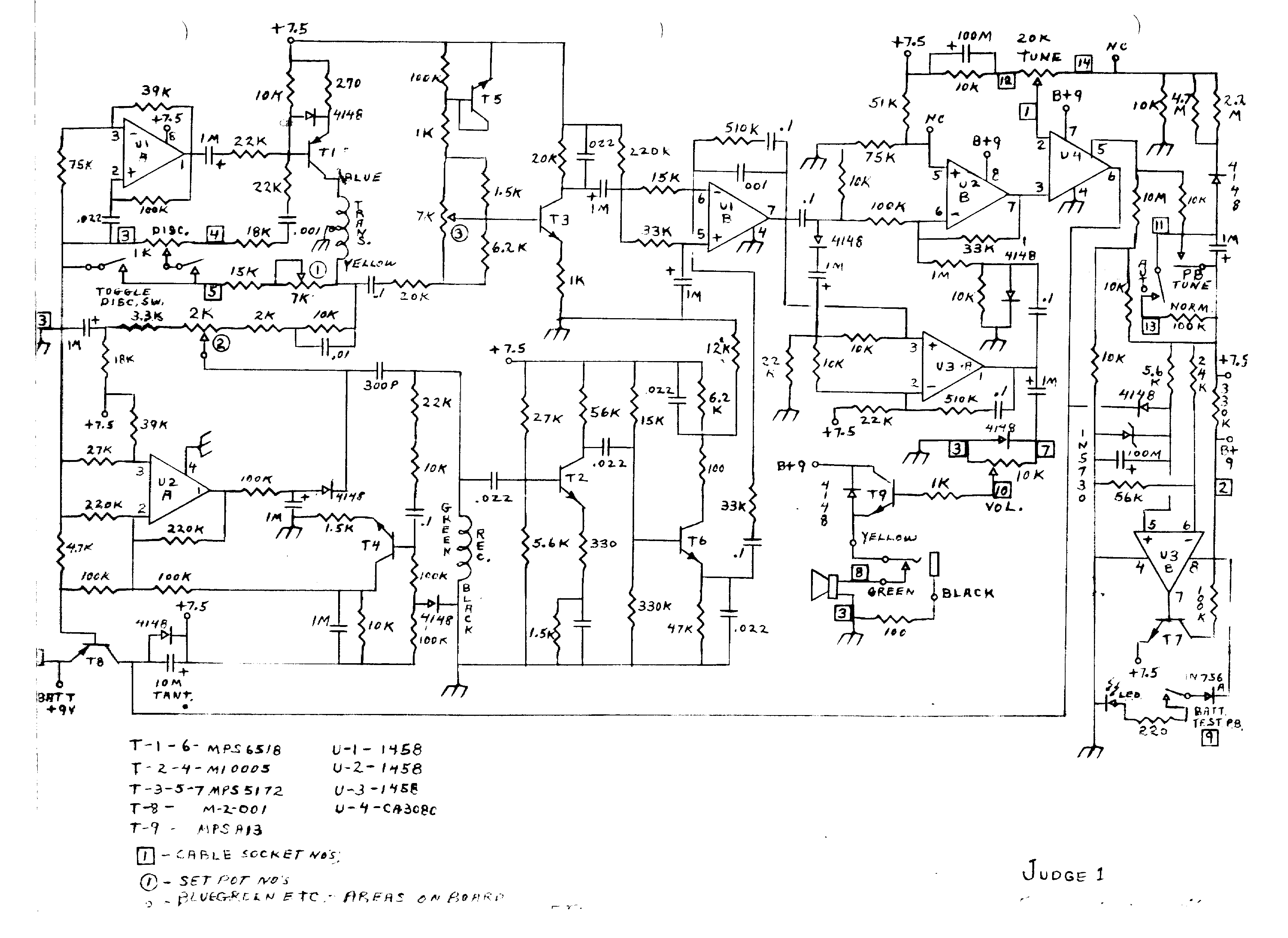 Ok all of the tech people out there. I have a Compass Judge I detector. I thought it worked pretty well. I found the owners manual and there is an adjustment for the rejection of bottle caps in the inside. While trying to adjust the bottle cap rejection I adjusted the wrong pot next to it. The pot that I adjusted is “set at the factory”. I have been looking for the schematic and how to set it ever since. I have not been successful at finding the schematic. After poking around on the circuit board with my scope I have found it does not seem to work in the same way that other units work. Does anyone have a Judge I or II schematic? Does any one know how it works? How about how well it should work compared with the technogy of the times?