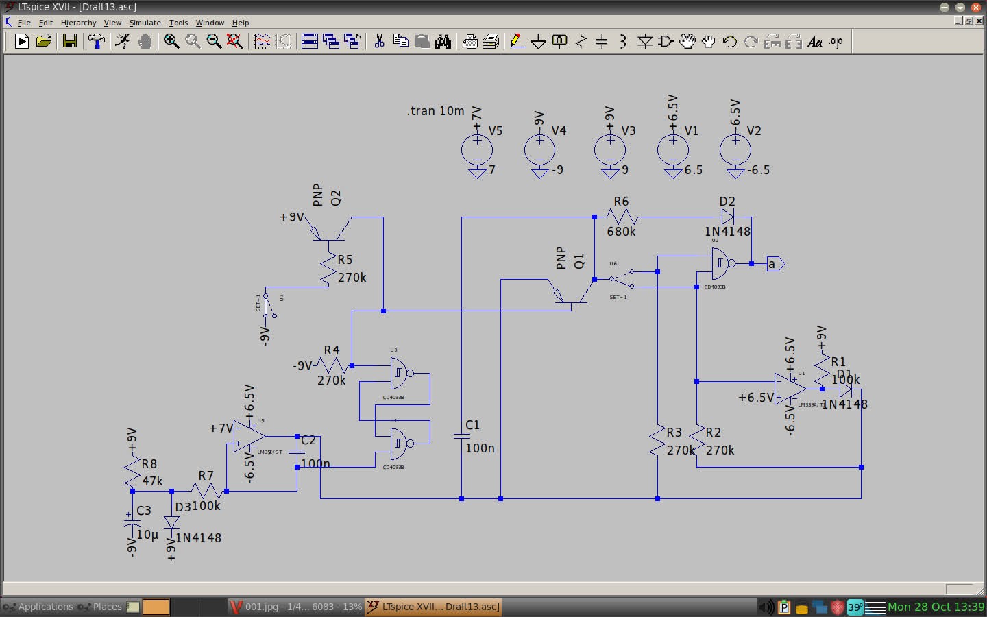 The circuit uses primarily +9 and -9 Volts. The +6.5V and -6.5V in my sim is redundant.