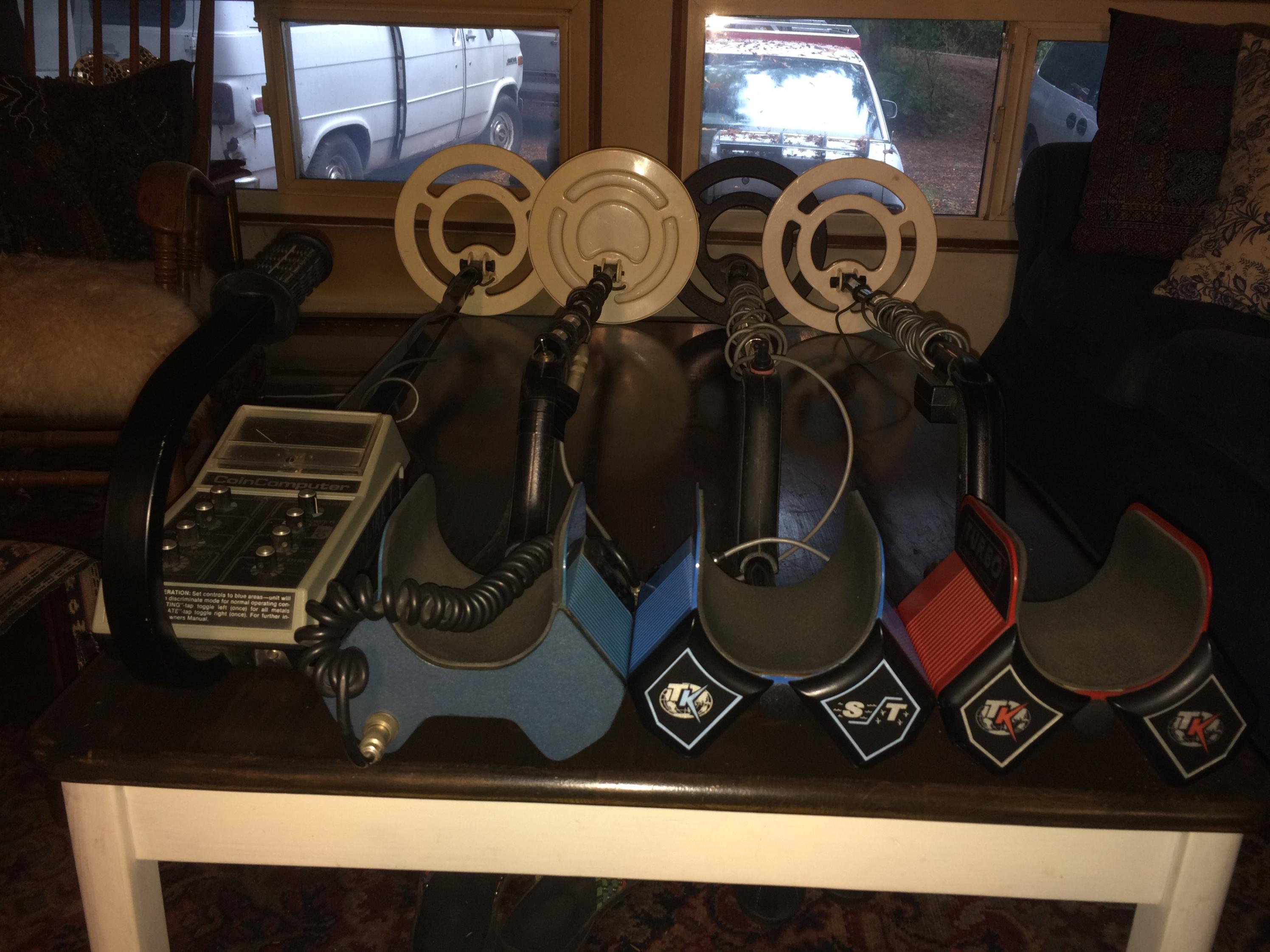 very unusual housing for the electronics, it was a 2 board design, I think. Those search coils look like the standard bounty hunter coils. No problem getting those.