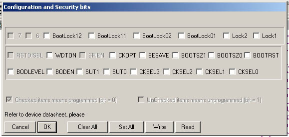 May I suggest for a meagre $40 you buy an AVRISPMKII. It's a USB device and comes with software too, makes programming code and fuses a breeze.