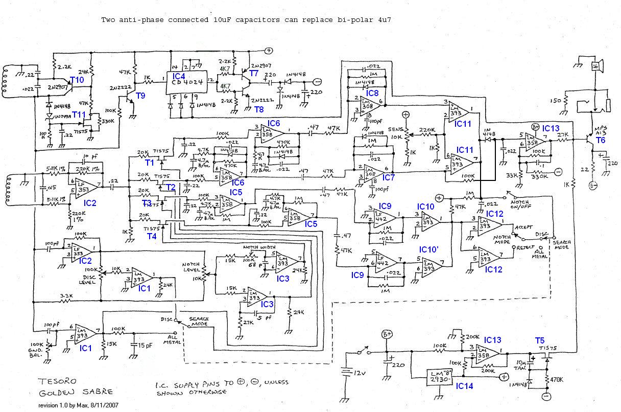 My detector is working very poorly,25cm max ,disc and notch working,sensitivity makes no much diference.Some oscillograms are not the same than posted by you, i have work to do to find the fault(s).The output tx coil and output of lf353 are ok thought,180º and looking good.