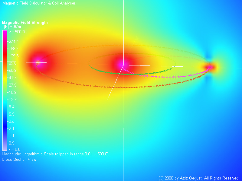 I can do many transmit (TX) coils, as needed. The magnetic strength field is a vector field (has strength and direction). On the pictures above, the direction is not displayed. I put 10 turns and and a drive current of 1 A for both coils (not relevant at the moment).