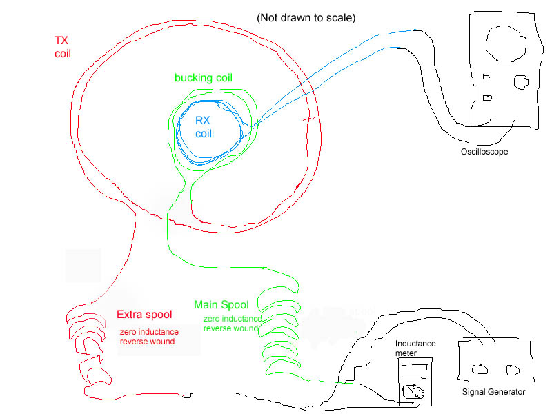 Then get a long piece of wire for the TX coil, bucking coil and another 20% extra wire and wind all the wire on special spools back and forth (not in coil) so the spooled wire has approx zero inductance. When you pull the wire off the spool, each "loop" has zero inductance and will not change inductance of spool (zero).