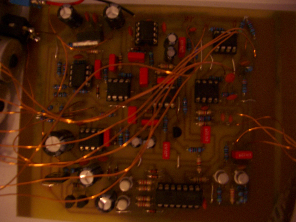 Sorry, I meant the regulated V+ at the LM7808 output pin 3 (should be +8 Volts) and the negative supply rail (from Diode D6 and Capacitor C5, should be about -5 to -6.5 Volts).Originally posted by akademiker View PostI used a 100k resistor instead of C9, the sinus at pin 1 was horrible with 47pf 68pf and 100pf. Changing back to 100pf and taking pics. Now there is no more strange signal when in middle position.