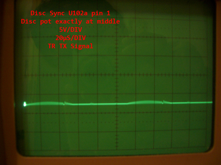 The syncs both show a nice sawblade and change their position a little. But when i turn the disc pot in the middle position the signal looks very strange and then is almost zero.