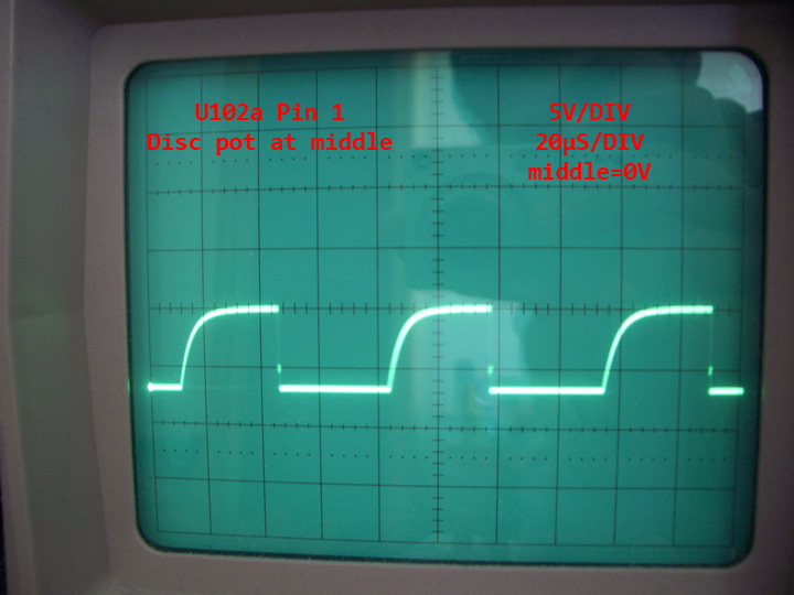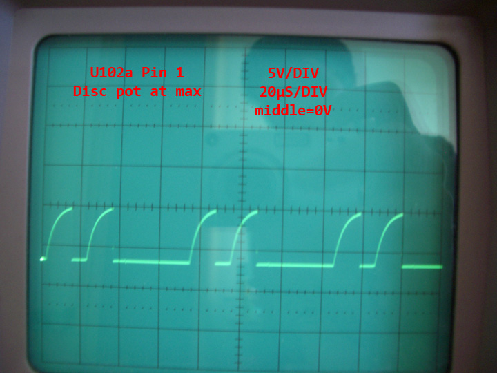 • I had the same problem with the waveform of the U102a pin 1. In the original design of the TGS (not the light version) there's a 10k pot in parallel with the R18. I soldered a 10k resistor in parallel with the disc pot. After that, the disc pulse was neat.