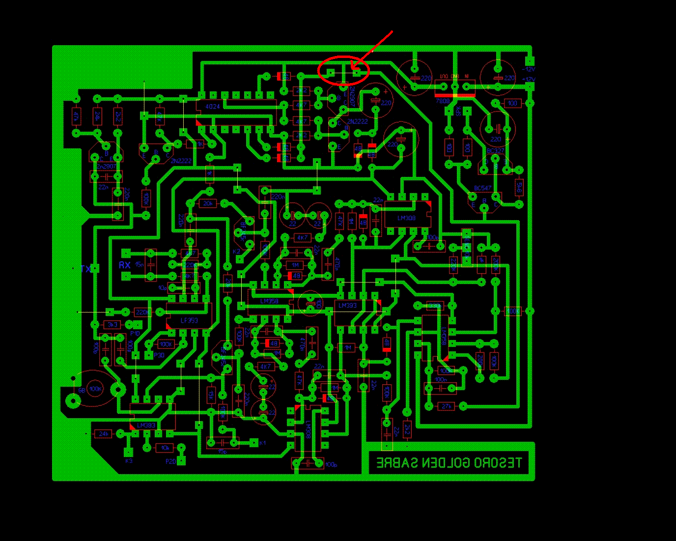 i have a constant tone i've nulled the coils at the lowest volume? it happens in the garden as well.when i lift the jumper circled (signal from 4024 ) in edwardo's pcb it stops and i have nothing at all. any ideas ?