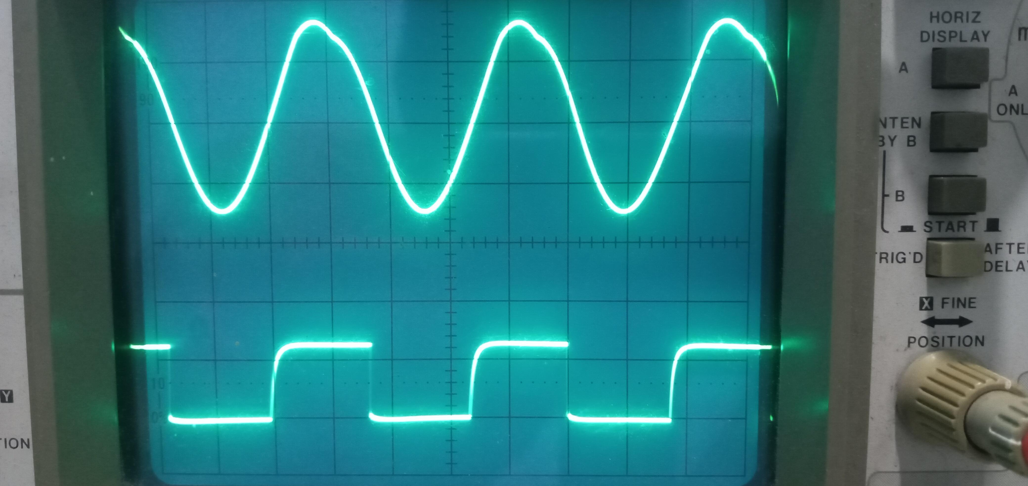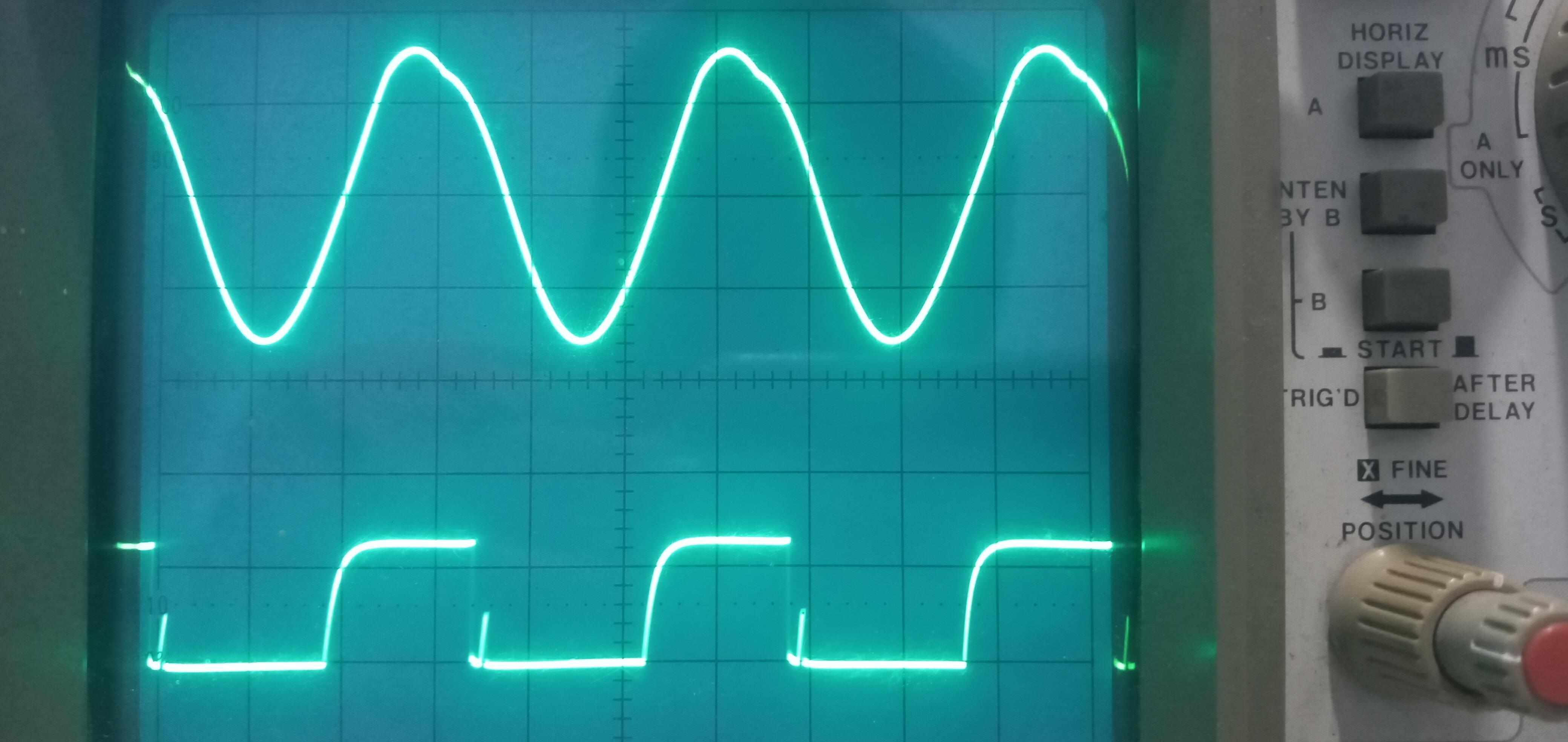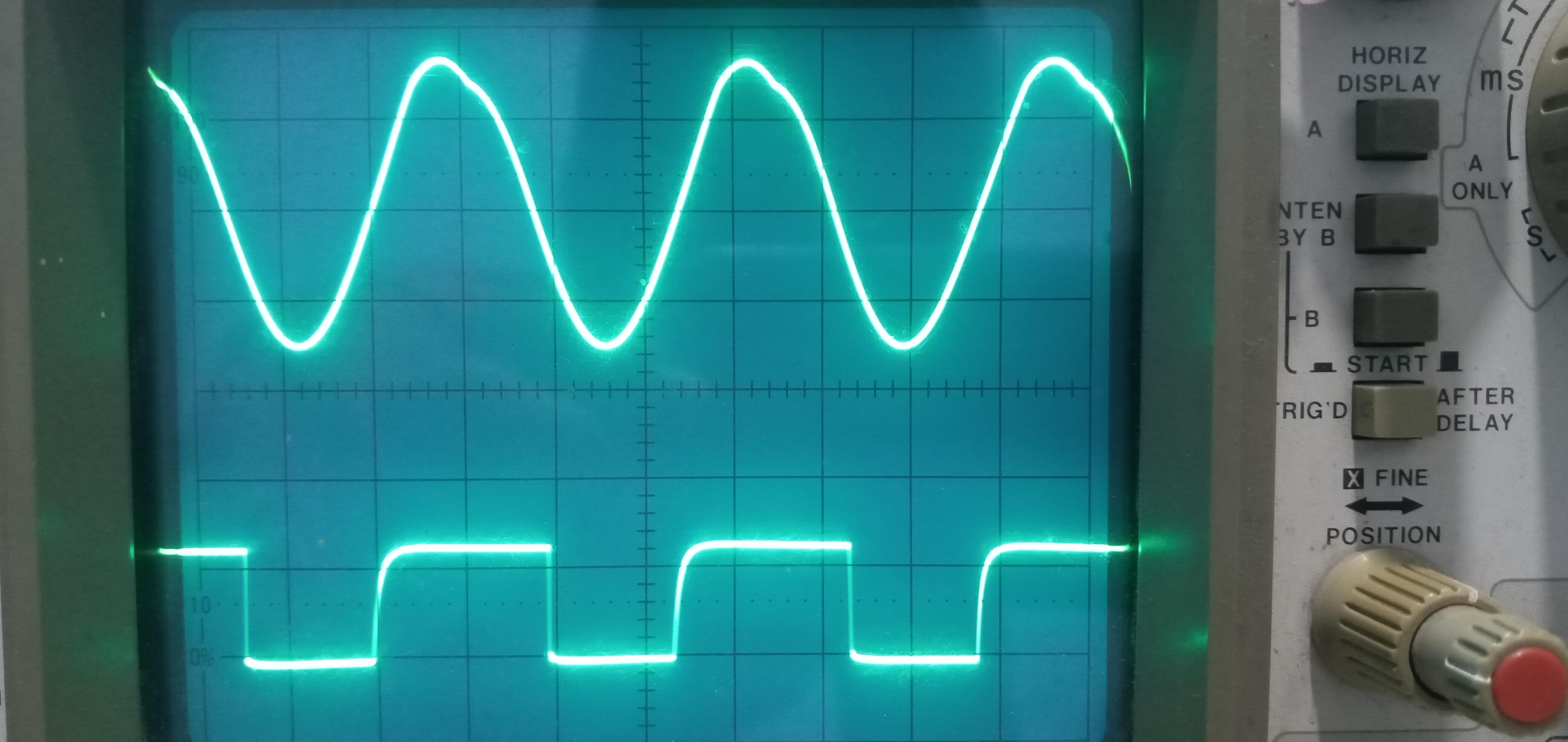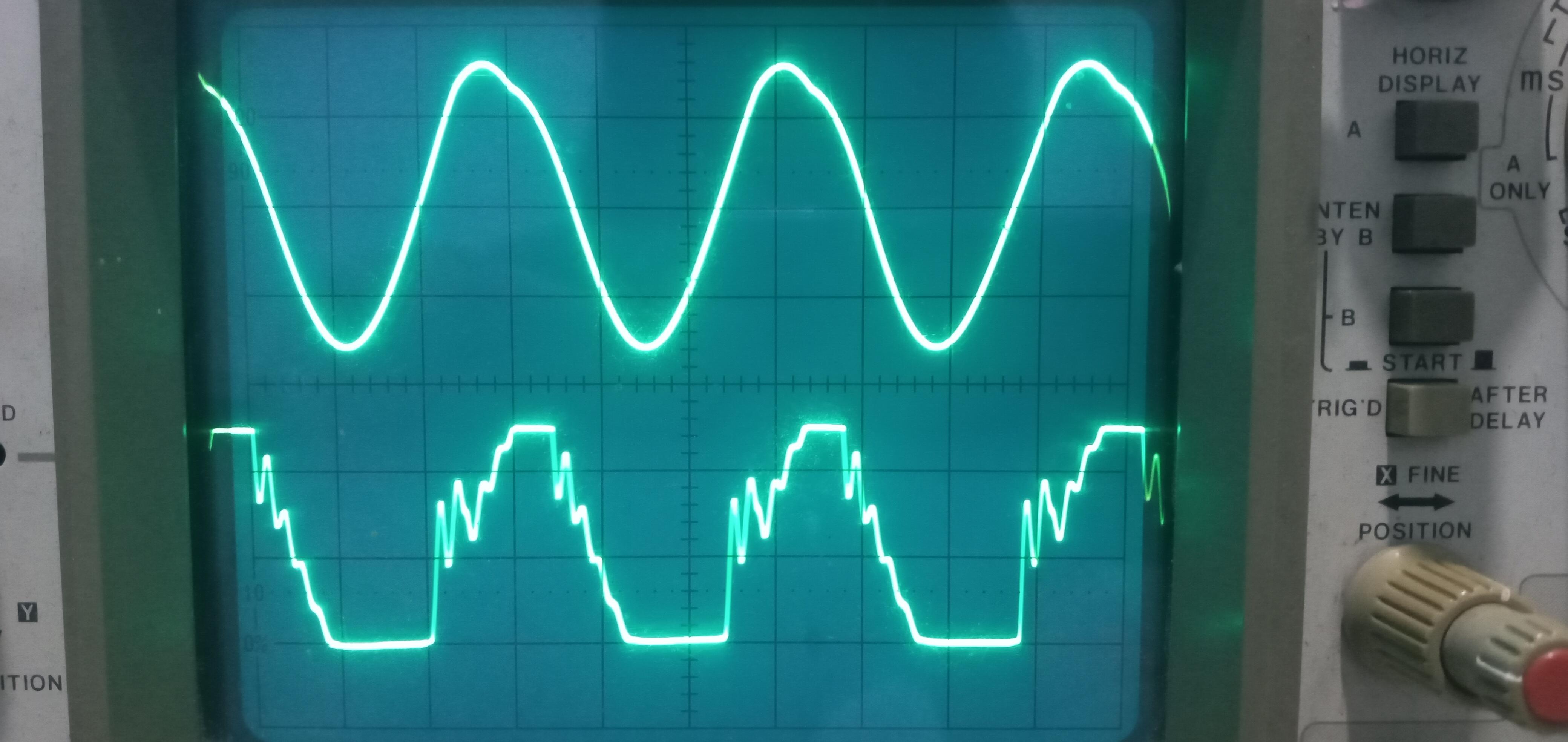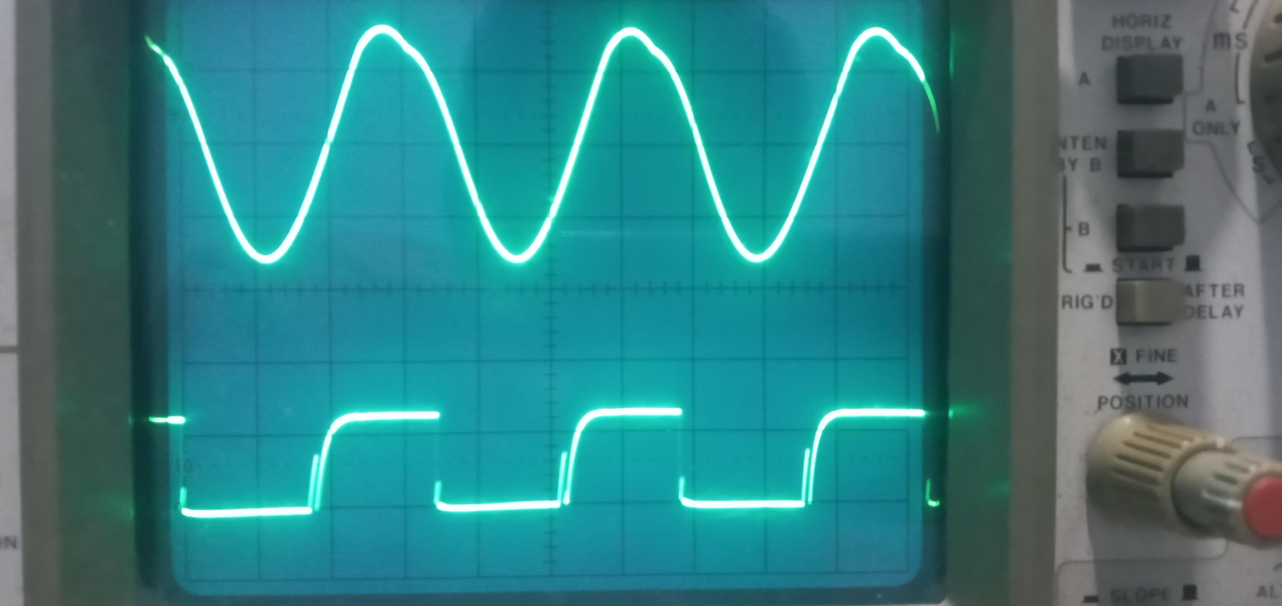 I made the measurements with the oscilloscope at the DISC stage and I had the following measurements at 5V, 20uS on both channels.
