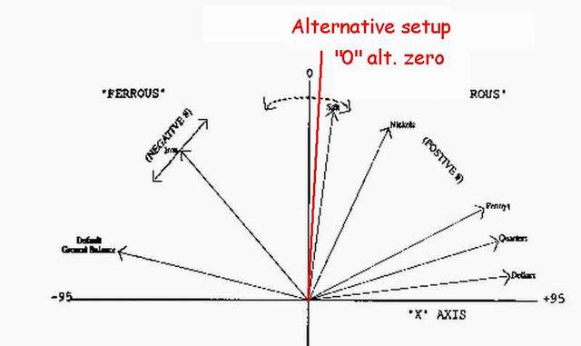 The ground balance works by sampling the received signal at the zero-crossing point. The theory is that both ferrous and non-ferrous targets affect the amplitude and the phase of the received signal, whereas neutral soil will only cause a decrease in magnitude. There is no phase-shift. Since you are sampling at the zero-crossing, the GEB channel cannot detect a change in the amplitude of the signal unless there is also a phase-shift. Ferrite causes a similar response, and that's why it's often used to find the correct GEB setting. Unfortunately ferrite does not react exactly like real soil, and the offset can be as much as -5 degrees. If you're using a preset GEB, then you will need to adjust it off from the ideal position by a few degrees and set the threshold to silent search, but the best solution is to have an external GEB control. If you set the GEB control to any position other than sampling at the zero-crossing point, then it's not acting as a ground balance control.Originally posted by ivconic View PostSo, i tried to setup alternative "zero" with this way of nulling coil. Why? TGS already have sufficient GEB&DISC adjustments...