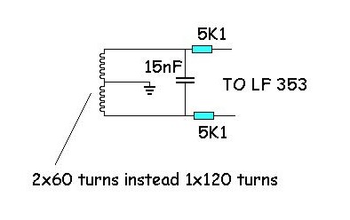 watching again it I start thinking at fact that LF353 diff config would amplify differential signal from the external leads ...so the sum of the two halves of RX... and that the effect respect GND is totally differential... so no noise or signal respect to GND at rx external leads...cause of the center tap.
