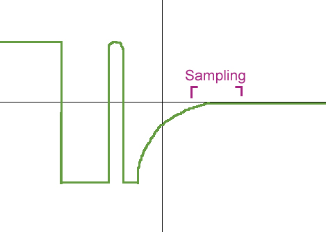 Also, when you look at your pic, you have the sampling starting before the signal has reached 0V. Ideally, once again, you would want to move your minimum sampling to a little later time, but it will still work this way. If the sampling is done too soon, and most of the sampling is done before the curve has leveled out, the signal strength may be great enough that the output of the differential integrator is saturated. If this happens, then all signals will be muted to the point one would think something is seriously wrong with the detector. Moving the sampling to a little later time will correct this problem. Also, if most of the sampling occurs before the decay curve has leveled out and the coil seems to work, then the coil may seem hypersensitive.