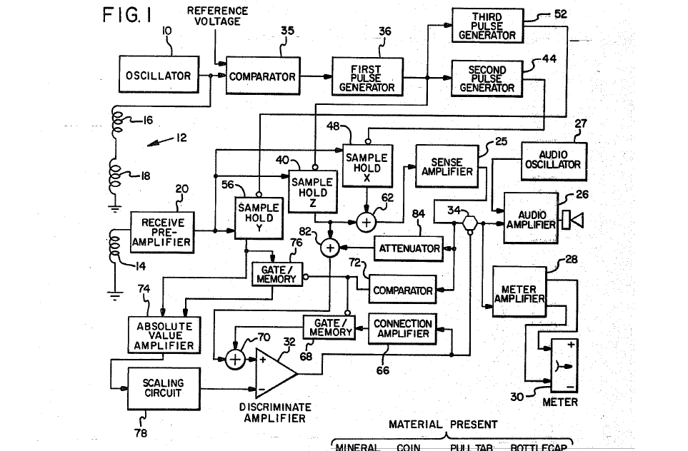 THIS NEW THREAD WILL BE TO SEE HOW I.C.'S ARE USED IN VARIOUS STAGES OF A METAL DETECTOR CIRCUIT. THIS THREAD WILL BE DOWN TO THE "COMPONENT LEVEL". I CHECKED THE T.HUNTING ARCHIVES ON PATENTS AND FOUND 86 PATENTS ON VLF DETECTOR'S. MASSIVE AMOUNT'S OF INFORMATION !!!!! WHAT THEY ALL HAVE IN COMMON IS ALL OR MOST FILES HAVE "BLOCK DIAGRAMS" !!!!! BLOCK DIAGRAMS ARE VERY IMPORTANT FOR WRITING PATENT'S AND TO UNDERSTAND WHAT A ENGINEER OR DESIGNER IS DOING . SOMETHING WE DO NOT POST HERE TOO OFTEN ARE BLOCK DIAGRAM'S. PLENTY OF SCHEMATICS ARE POSTED HERE BUT THAT IS NOT ENOUGH. SO THIS NEW THREAD WILL IDENTIFY EACH STAGE OF A METAL DETECTOR AND WHAT IT DOES AND THE I.C.'S ROLE IN THAT CIRCUIT OR STAGE . IT WILL EITHER BE A PORTION OF THE BLOCK DIAGRAM OR PORTION OF THE SCHEMATIC.....OR IT COULD EVEN BE A PART NUMBER OR MULTIPLE PART NUMBERS IN QUESTION. HERE ARE SOME EXAMPLES OF METAL DETECTOR STAGES 1. TRANSMIT SECTION OR FRONT-END 2. DIGITAL TO ANALOG CONVERSION. 3. MULTIPLEXING 4. RECIEVE SECTION 5. AUDIO THRESHOLD OR AUDIO AMP. 6. DISCRIMINATION OR NOTCH CIRCUIT'S. AGAIN THE PURPOSE OF THIS THREAD WILL BE TO UNDERSTAND WITH 100% ACCURACY, WHAT THE COMPONENTS IN THE CIRCUIT STAGES ARE DOING. I HOPE THIS THREAD IS A SUCCESS. I WILL POST SOME SCHEMATICS THAT ALREADY HAVE THE STAGES IDENTIFIED. AND THEN WE WILL BREAK IT DOWN FURTHER TO GIVE A VERY INFORMATIVE "CIRCUIT ANALYSIS" OR EDUCATIONAL DESCRIPTION............EUGENE