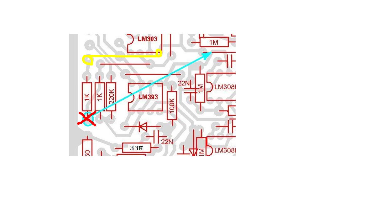 See attached photo. The green lines are jumpers I clipped on to perform the test. One is just to short the RX coil input to keep it from adding another signal. The other is the ground-to-ground shunt that I theorized would relieve some of the ground buss lifting by the audio pulse. In a revised circuit, you would also cut the ground connection from the speaker to it's current ground buss connection.
