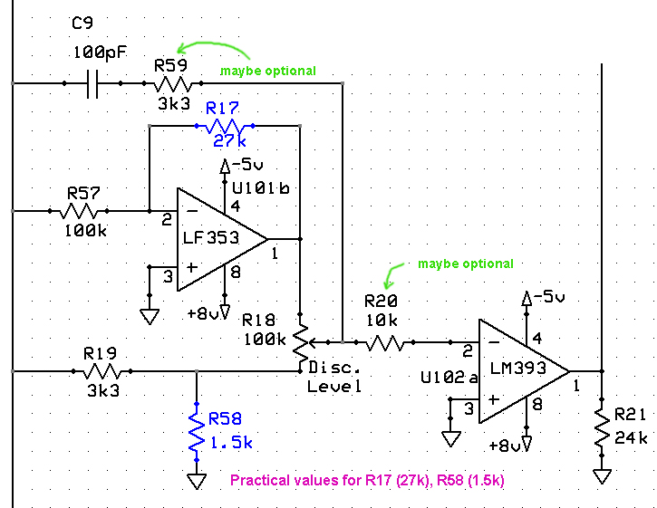 I added resistor R59 (3.3k) to 180 deg disc circuit as precaution so TX coil is never connected directly to LF353 output through C9 - mainly to not drain current from TX oscillator.