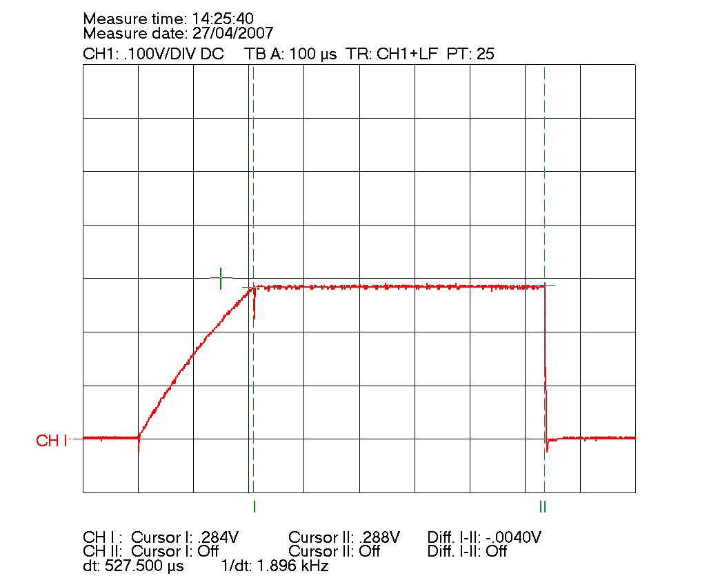 From memory the gate voltage is between 4 to 5 volts during regulation,the opamp goes rail to rail with switch on and switch off.