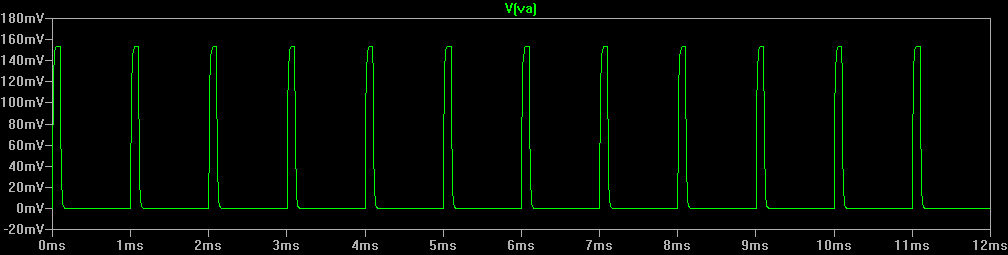 But remember this pulse is only the "pull-up" for the outputs of the CD4024, so the audio is the narrow pulses that come from the CD4024 as long as the LM358 output is high.