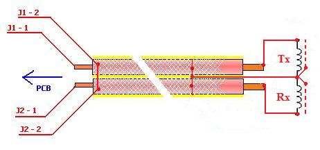 With Rx J2-2 wire, Tx J1-2 wire, cable shield connected at coil end of cable: