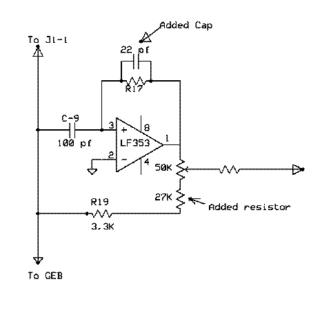 I tried changing R43 from 100K to 47k and also R44 from 2.2k to 4.7k. This give a swing on pin 6 U107 of +.72 at Min to -.99 at Max.