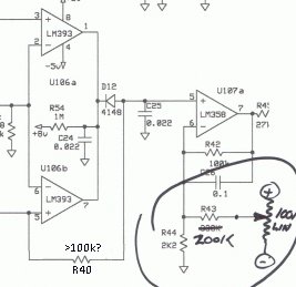 I just had another thought. I had always looked at R42 on U107 as being a feedback resistor to establish gain. I wonder if your comments regarding R40 would also apply to U107?