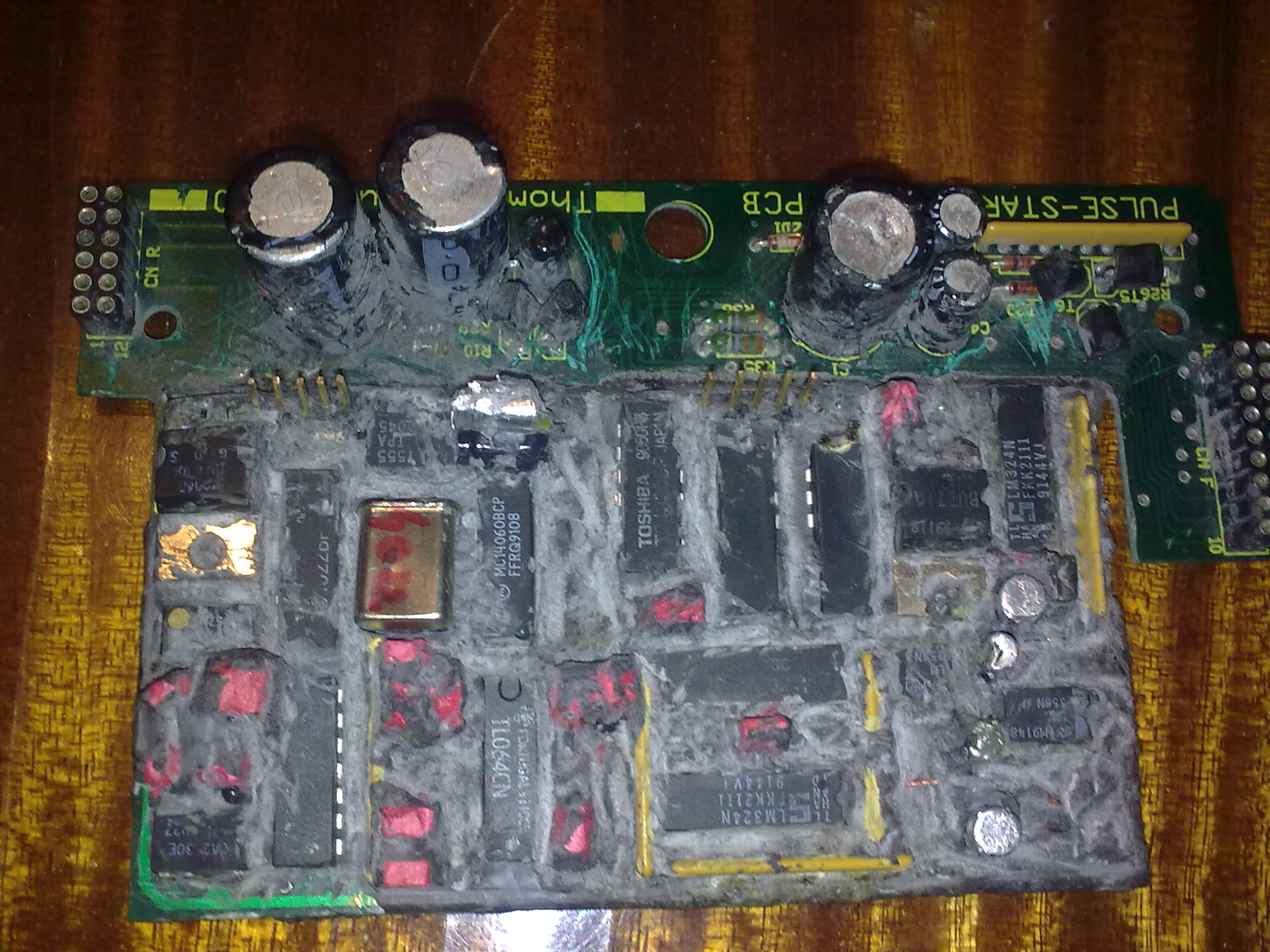 Unit on last few pics is not uC based, just analog machine (i never see this thing before) and reverse engendering is possible if components are not badly damaged, but will it worth? And epoxy problems sometime can be solved using special dissolver liquid, try to find it at some store selling boat repair kits and chemicals etc, not expensive and usually not make much damage to components.