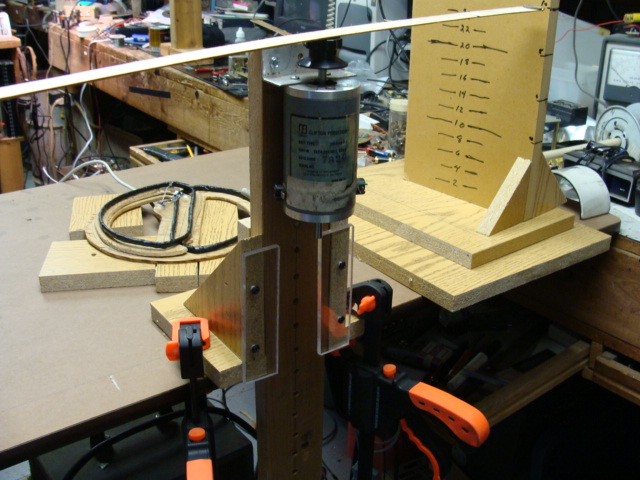 The motor is 12 volts DC from a junk printer. I am driving it with a variable power supply. Most anything will do since the current drain is about 100 ma at the speed I want for testing. I may mount an LM317 between the angle brackets with a nice speed control and on/off switch.