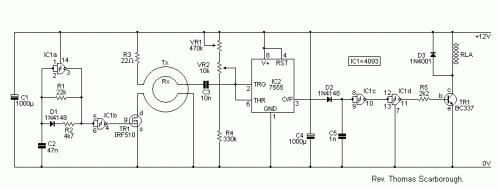 Another project from Thomas Scaraborough. Coil can be DD or OO type ( RLA can be replaced by buzzer):
