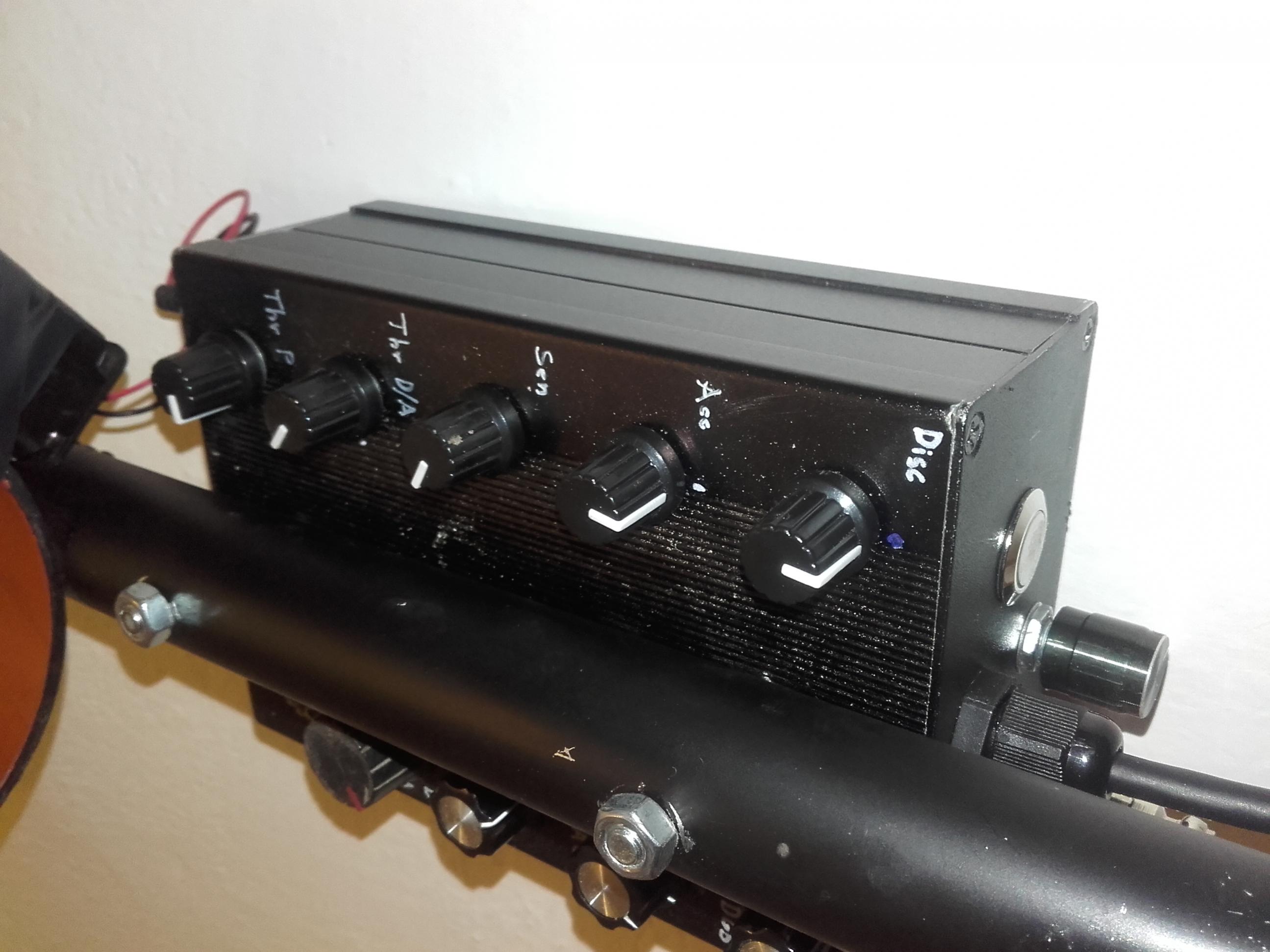 A attached schematics. There are pin swap mods for Acceptance channel and GEB channel against original design - as is mentioned in this thread on several places. I also changed LF351 for LM833 to have both channels the same. PCB for pinpoint does not exist, I did it on prototype board as you can see on pics. There is add on board for this channel and another one for VDI. Now it consumes about 100mA which is quite a lot. I would to draw SMD board for pinpointer and VDI at once with TL064 and I will change LF347 in Acceptance channel to TL064. One half of LM393 is used for GEB of Pinpointer and other half for VCO. Capacitor drives frequencies. 22nF is for 200-400hZ (15nF is 240 - 500Hz and so on...), which I found as most pleasant. There is spare op amp on LF357 and I did not grounded inputs as is often mentioned in datasheets for op amps. This and few more things I want to correct on SMD board. Case has a lot of buttons, some of them can be reduced by CD4053 maybe... Do you have any other recommendations which I should implement?