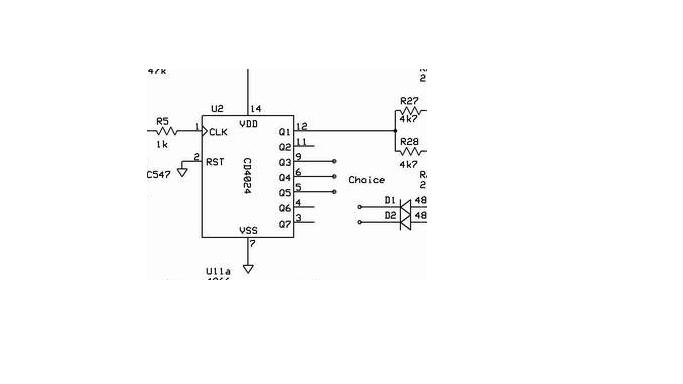 D1 & D2 can be connected to CD4024 output at pins 9, 6 and 5.......its marked "choice" for that reason.......which is a high tone and which is low for Iron and non iron is a personal choice only.....we have not had any actual direction from the experts......
