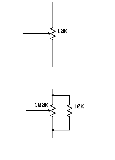Whether to use 10k pot, or parallel 10k fixed res with 100k pot? There is a very slight difference in overall response - oh about 2 degrees at the CW end but either way