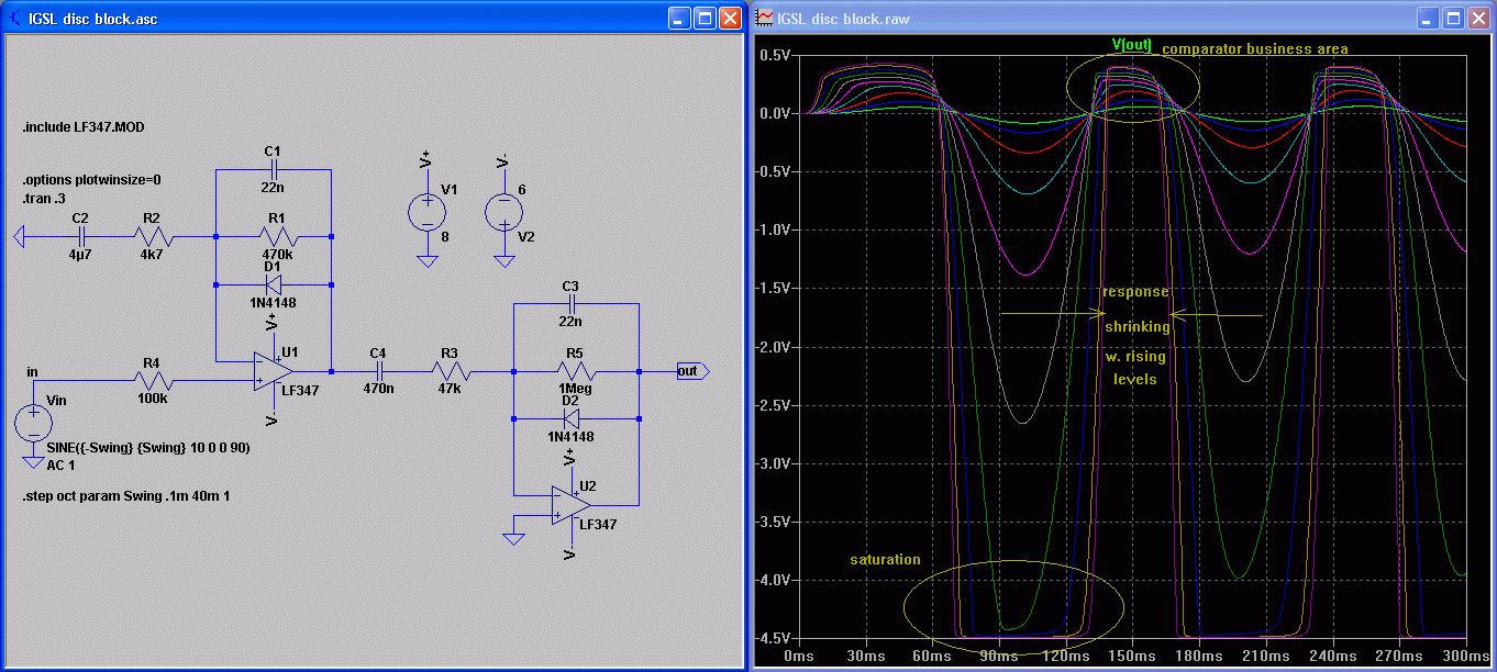 • Next is the existing solution and clues to what's wrong with it. First please note that the response of a target is squeezed to under 0.6V (diode, eh) and the comparators really work with that much, and the sensitivity control is really designed to work with this much. It is the same with TGSL.