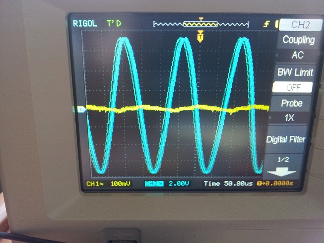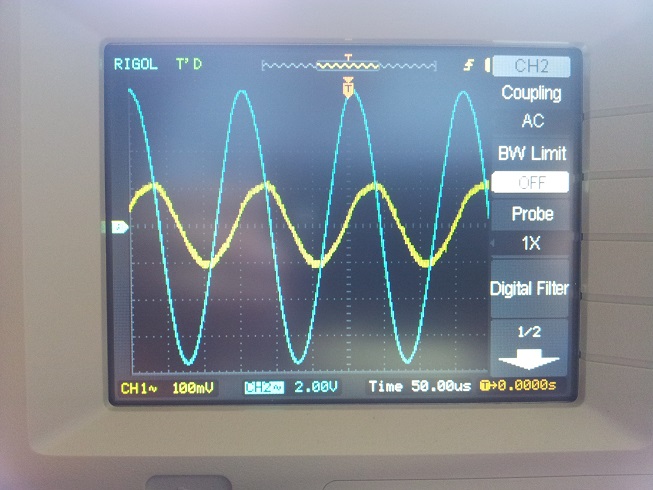 Hi guys! I am trying to make a concentric coil, but I do not know how should look the phase shift and the voltage of the pin 6 of the input amplifier. When I tune the coil what should I try to get - about a 200 mV amplitude (picture 1) or about 20 mV (picture 2). The blue line is the TX signal. Which one is better? What about the phase shift? Is it good on my scope shots?