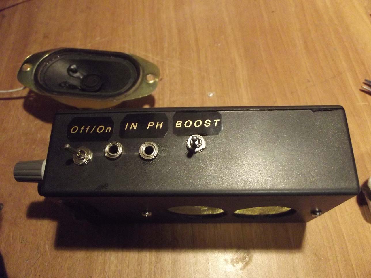 I added a treble Tone lift pot & a Boost-switch ..Phones socket -LED to remember to turn-off-HA.Haaar..