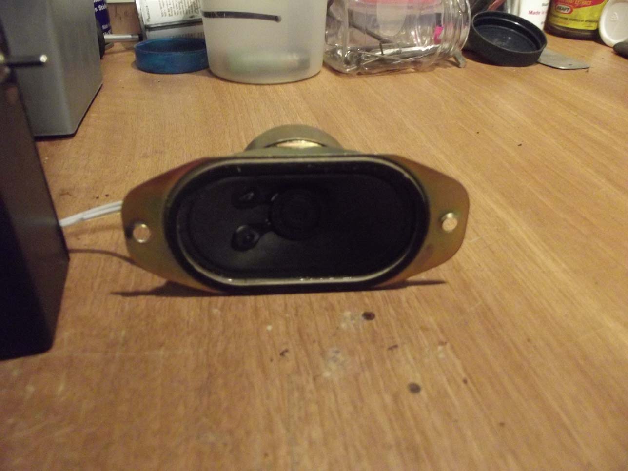 Easy to build just the LM386 which I had here a few resistors & caps ,See the speaker I used 1 of 2 from a wrecked little TELE..8 ohms..