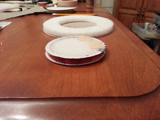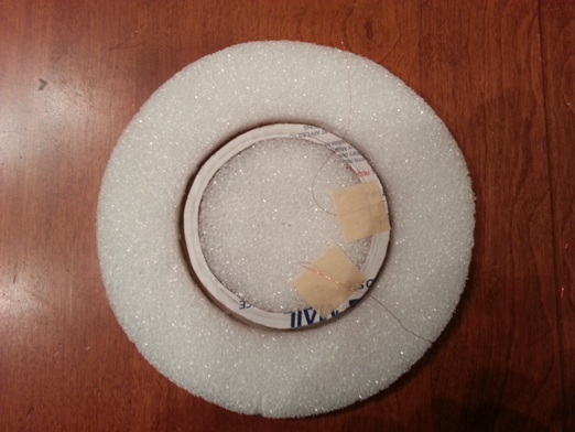 The foam "donut" is then glued to a sheet of stiff cardboard and the Rx spool is glued into the center.