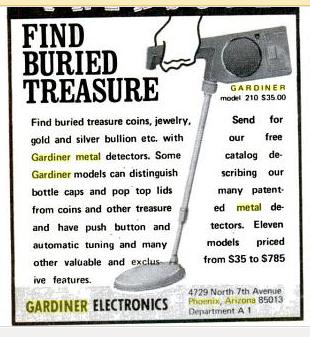 Probably you have an old promo catalog of metal detector models of former Gardiner Electronics Co. from Phoenix, Ariz. too and are willing to post copy here or PM me?