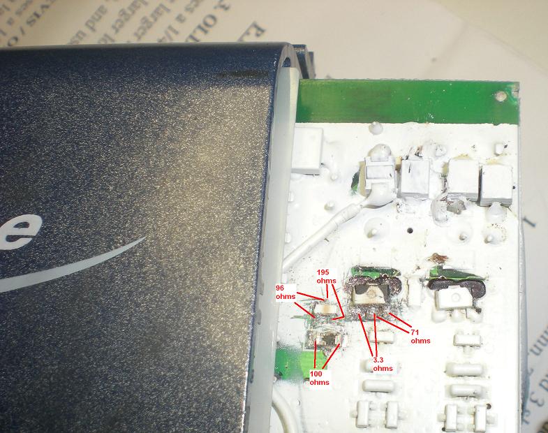 It was about to be repaired by Minelab but the owner had second thoughts and had it returned and I bought it. I opened it up and see that it looks like a resistor (100 ohm) got hot and possibly a Fet/transistor/whatever shorted. Looks like Minelab had gotten started on it by scratching off the white paint. This circuit area is near where the battery wires come in to the pcb. Anyone know for sure what this part is?