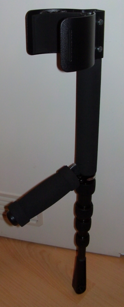 I used a 1-leg tripod (aluminum). All segments I shortened, so that the rods are pretty small push together. The lower stem I replaced by a PVC rod. In plastic rod I have milled with a router table 2 grooves. The head where the coil is mounted is made of PVC and glued with two component adhesive. When everything is done, I make a final photo.